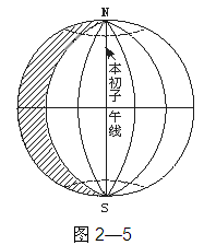 5、单选题 读图2—5,判断30~33题(阴影部分表示黑夜)。