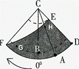 5、综合题 读太阳光照图,阴影部分为黑夜,EF与极圈相切,CB经线为本初子午线。