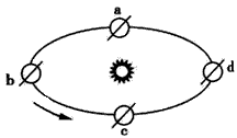 2、“嫦娥二号”升空时,地球在公转轨道上位于下图中