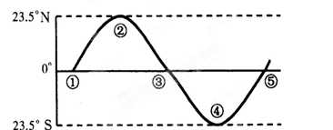 D.直射点位于④-⑤之间,并向南移动