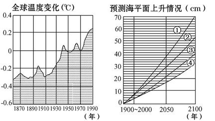 点评:本题组考查全球气候变暖产生的影响,难度居中。解答本题需注意以下几点:(1)全球气温变化的特点是波动上升,在这里不能回答持续上升。(2)明确全球气候变暖的影响及治理措施。