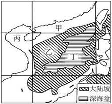 小题1:海洋的石油,天然气分布在海洋的大陆架上,图中位于大陆架的是甲,丙处。选择B项