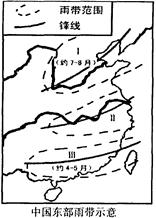 1.根据雨带在Ⅰ、Ⅲ地区的时间,可以推论,在一般年份,雨带推移至上海地区的时间大致是2.如在7月以后,雨带仍未推移进入Ⅰ地区,我国东部地区将可能产生灾害的状况是