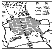 (1)甲、乙、丙、丁四地中最有可能成为商业中心的是___________,理由_______________________
