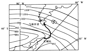 3、单选题 下图为我国第31次科考船“雪龙号”航行途中一月初南极附近海平面平均气压(单位:百帕)分布图,据此回答下列各题.