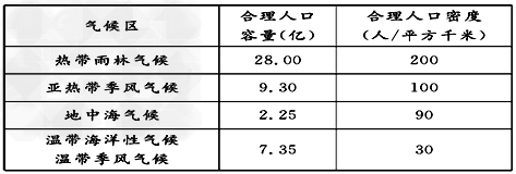2.按表格推算下列气候类型所在地区,远没有达到合理人口容量和人口密度的是