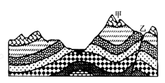 1.图1所示地区的地质构造形态为2.图2中字母a表示3.图2中①~④,能反映乙处岩石形成过程的数码代号是