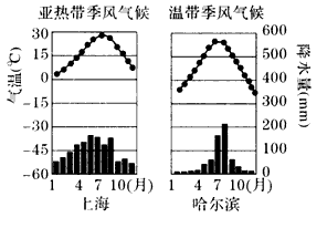 5、单选题 上海和哈尔滨两地气候资料,大致可以反映长江三角洲和松嫩平原气候状况,读图回答1~2题