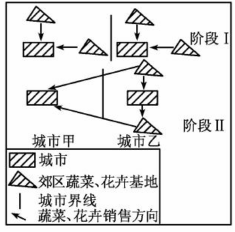 1.阶段I鲜花和蔬菜产区形成的主要区位因素是2.阶段Ⅱ鲜花和蔬菜产区的区位变化主要是因为