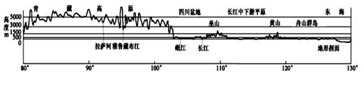 4、综合题 下图是我国 30°N 附近地形剖面示意图。读图回答下列问题。 (25 分)