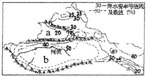 小题1:根据图中信息可知,塔里木盆地中心降水少,但降水变率数值大。所以正确的是B项。