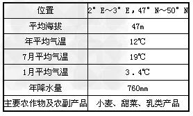 小题2:甲地气候雨热同期 ,乙地水旱灾害少,A错。甲地季风气候,水旱灾害频繁。乙地温带海洋性气候,光热条件不足,B对。乙地没有土地荒漠化,C错。甲地水稻土肥沃,乙地耕地面积广,地广人稀,D错。