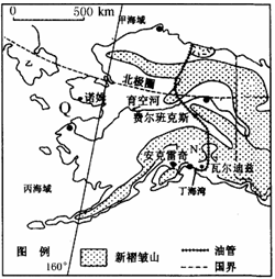 小题2:输油管道位于北极圈附近,该地区气候虽然寒冷,但为苔原气候,不是冰原气候,所以A叙述错误;该地区气候寒冷,但水源不缺乏,所以B选项叙述错误;北冰洋沿岸油田开采出的原油由油管沿线的十二个泵站驱动,穿过三座山脉和800余条大小河流,向南运送到阿拉斯加最北的不冻港Valdez装船,所以C选项错误,D选项正确。所以本题选择D选项。