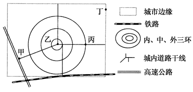 5、单选题 读某城市内部和对外联系路线图,完成小题。