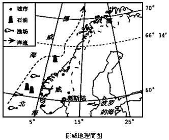 (4)挪威境内自然资源丰富,主要有:_________、_________、_________等,除此而外,结合图中信