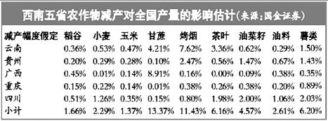 (2)本次西南部分地区气象干旱对我国农产品价格影响较大的