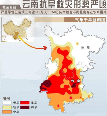 1、综合题 至2012年,云南省连续三年遭遇大范围干旱,引发国人关注。