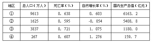 3、单选题 下表为2002年我国四个地区的相关数据,据此回答问题。