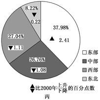 材料3:“2010年我国各地区占全国常住人口比重及变化图”。