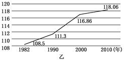 (2)结合甲图中的数据可以判断目前我国所处的人口增长阶段为(3分)? ( )