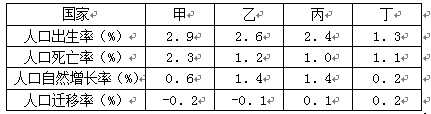 3、单选题 下表为四个国家某一年的人口变动数据,回答下列各题。