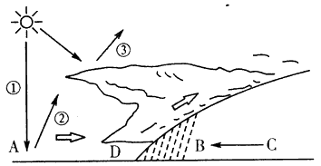 (1)D、C两处相比处_____________气温较高,__________处气压较高。A、D两处相比,白天_______