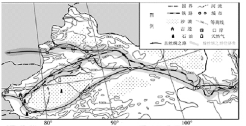 材料一:“新丝绸之路经济带”是在“古丝绸之路”基础上形成的一个新的经济发展区域,被誉为“世界上最长、最具有发展潜力的经济大走廊”。图14区域为“新丝绸之路经济带”的重要组成部分,图15示意河西走廊古丝绸之路部分路段。