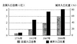 5、单选题 图为某国人口增长和城市人口比重统计图,读图回答3—5题。