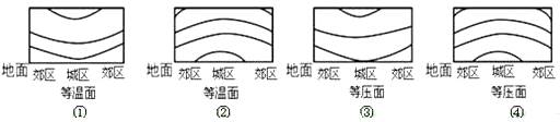 2、单选题 下面四幅图中能正确表示城市热岛效应现象的是( )