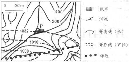 (1)据图所示,P城市位于封面气旋的东部,受暖锋影响;P城附近大型火电站排放的工业废气中含有大量的灰尘,可成为凝结核,有利于降水的形成,燃烧煤可以排放出大量的二氧化硫,形成酸雨。