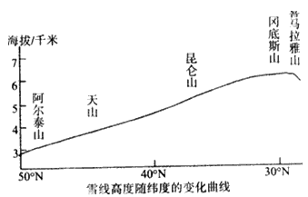 1、单选题  读“雪线高度随纬度的变化曲线”,完成1—2题。