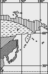 5、单选题  下图为“亚洲东部某区域陆地自然带分布示意图”。读图回答1~2题。