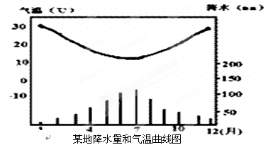 4、单选题 读下图,“某地降水量和气温曲线图”回答下列各题