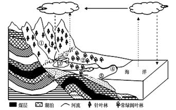 (3)③为温带落叶阔叶林,同纬度的⑥为温带荒漠带,这种差异产生的原因是?。