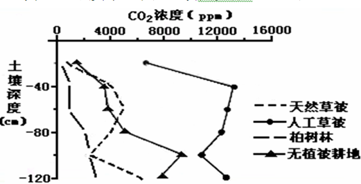小题1:如果水分条件相同,那么图中哪种植被下的土壤、岩石最易被溶蚀: (?)