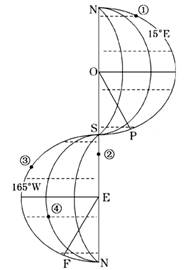 4、单选题 读图,图中OP、EF为地球公转到近日点附近的晨昏线,回答问题。