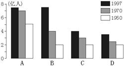 3、综合题 读“1950~1997年部分大洲人口增长图”和“1997年部分大洲人口再生产表”,回答下列问题。(6分)