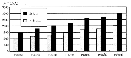 3、单选题 该图是某地区1950—1980年人口增长图,读图回答小题: