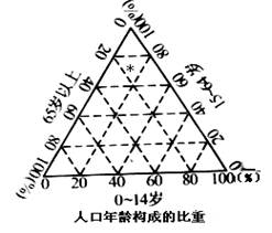3、单选题 .图中“*”表示人口年龄构成状况,其中0-14岁人口的比重约是(?)