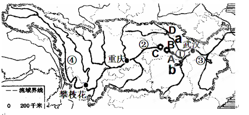 (1)根据图示长江流域的水系分布分析,a表示流经武汉的支流汉江;b表示位于湖南的湖泊—洞庭湖;