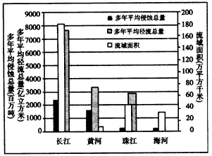 (1)读上图,从我国土壤侵蚀量较大的两个流域中,任选其一简述土壤侵蚀严重的原因。