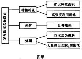 参考答案:(1)扩大棉花的种植面积、开矿乱开滥采、用木炭炼铜导致森林砍伐、植被破坏,造成水土流失;高强度利用耕地导致土地退化;大量排出含SO2的废气,不仅污染大气,还会形成酸雨污染土壤和水体,影响生物生长。