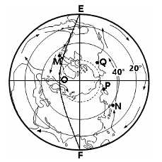 5、单选题 下图是以极点为中心的半球图,箭头表示洋流的流向。读图完成下列各题。