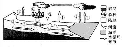 2、单选题 读水循环示意图,图中序号表示水循环环节,回答1~2题。