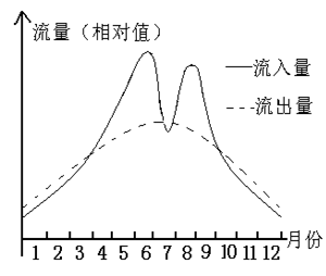 2、单选题 图为 我国某水库流入水量与流出水量年内变化情况,读后回答问题。