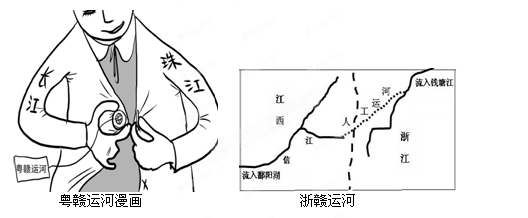 5、单选题  读我国规划中的粤赣运河漫画和浙桂运河图,回答问题。