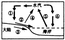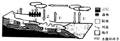 5、综合题 读“水循环示意图”(图6),回答下列问题( 10分)