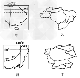 5、单选题 在年降水量不足250毫米、灌溉水源不足的地区,一般不能发展灌溉农业,下图中的甲、乙、丙、丁所示地区都是灌溉农业区。读图回答1—2题。