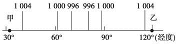 2、单选题 图为30°N附近海平面某月气压分布示意图(单位:hPa)。读图回答下列各题。