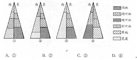 小题2:下面四幅山地垂直植被带模式图中,与10°S附近西部山地相符的是